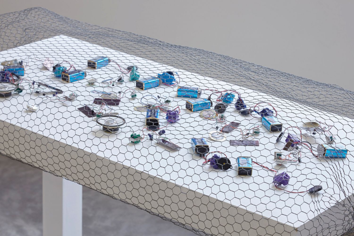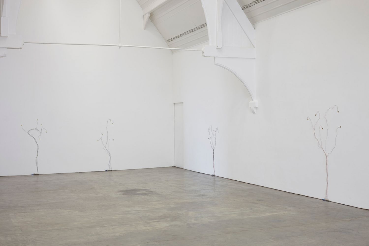 A exposição «Spacings» apresenta três instalações sonoras, incluindo uma feita especialmente para a Ikon. Combinando materiais do quotidiano e dispositivos electrónicos de rádio, elas envolvem interações com o vento, a eletricidade e a luz, estabelecendo relações sonoras entre os objectos.